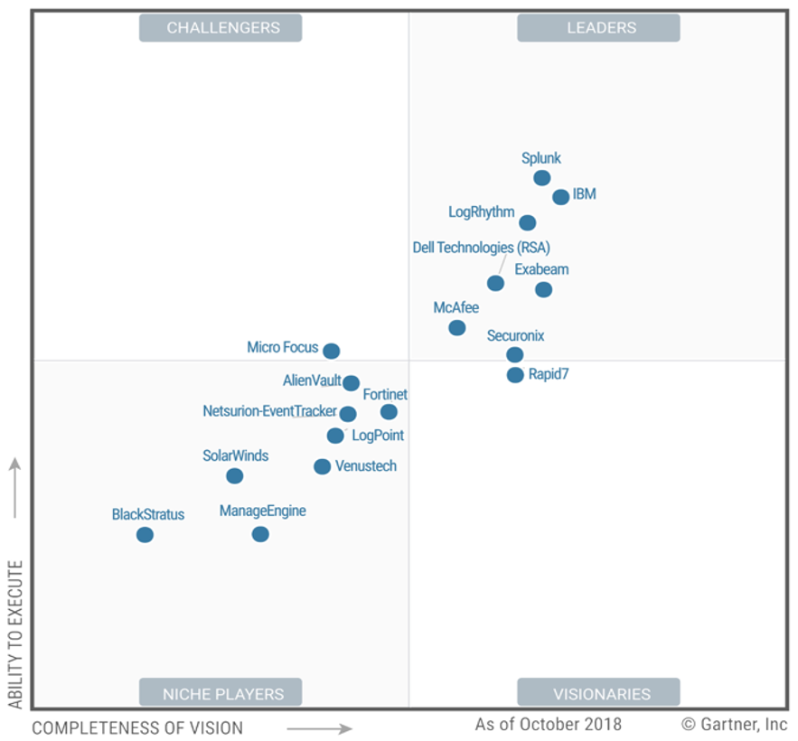 D'après le Magic Quadrant du Gartner de 2018 les 2 leaders sur le marché son IBM et Splunk.