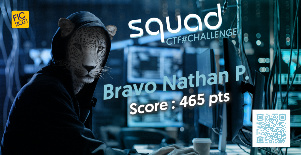 Parce qu'on adore les challenges chez Squad, nous avons proposé à nos visiteurs un défi CTF, préparé par nos soins. Bravo à Nathan P., étudiant à l'ESNA de Bretagne, qui a relevé le défi et a remporté le maximum de points et donc le lot en jeu !