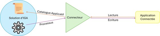 Le rôle du connecteur est de faire le lien entre les applications du SI et la solution. Il existe de multiples connec- teurs dont la principale différence est le type d’application à laquelle ils permettent la connexion. Ex : il existe des connecteurs Active Directory, SAP, JDBC, CSV, XML... Il est aussi possible de développer des connecteurs personnalisés pour se connecter à des types d’applications non couverts par les connecteurs par défaut.